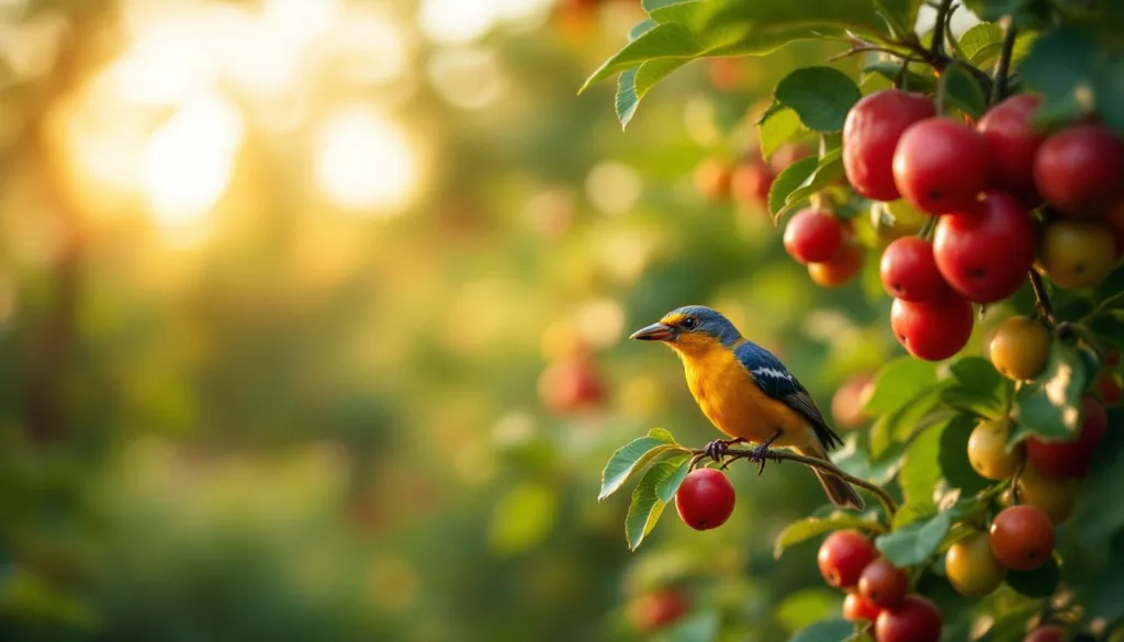 הציפורים לא רק נהנות מהפירות, אלא גם עוזרות בהאבקה של הצמחים. 🐦 עבודתן הכבירה מסייעת בשיפור איכות התוצרים ובתחזוקת האקולוגיה של כל גינה. לדוגמה, הן מפזרות זרעים, מה שמגביר את הגיוון הבוטני.